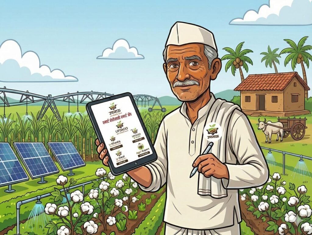 An all-in-one digital platform offering: U-Khaata (Digital Farm Records), U-Deal (Smart Deals & Marketplace), Agri Expert Support, Upjaoo eMall